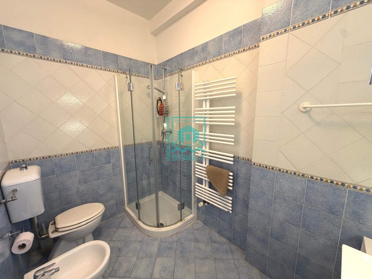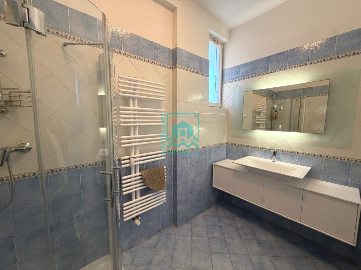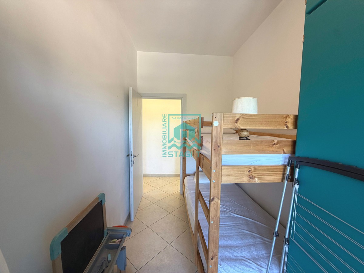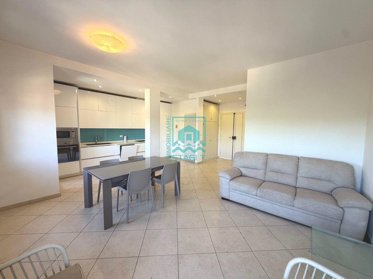 ingresso in grande e luminoso soggiorno con cucina a vista, balconcino di servizio e terrazzino vivibile con parziale vista mare, accedendo poi alla zona notte troviamo due camere matrimoniali con ulteriore balconcino vista monti e scorcio di mare, cameretta, bagno di servizio e bagno completo finestrato.