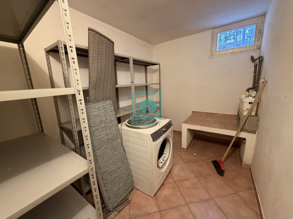 La taverna è così sviluppata: grande vano con forno, ideale per momenti di convivilità, cucina, vano lavanderia/studio e bagno.