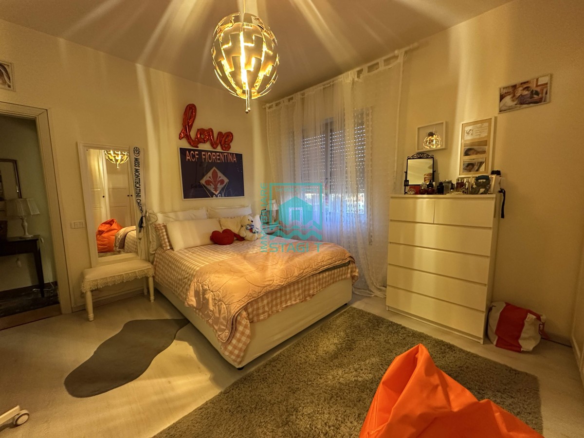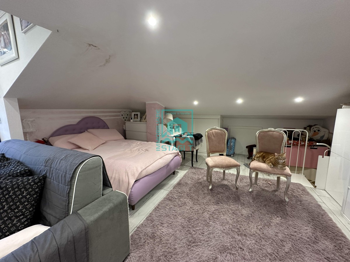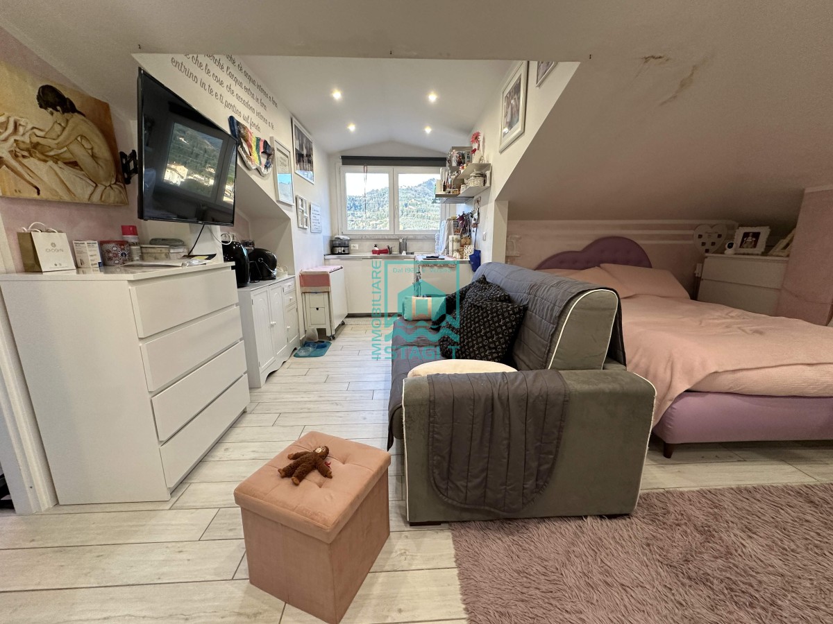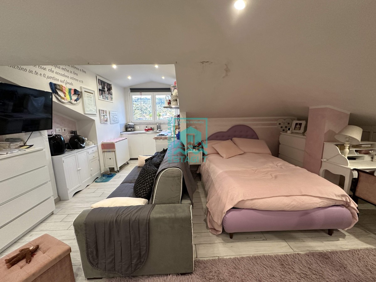 Da una delle matrimoniali, tramite scaletta a chiocciola, si accede alla mansarda, che ha anche accesso indipendente dal vano condominiale, composta da un grande vano dove è stata ricavata una camera, un angolo cottura ed un bagno.