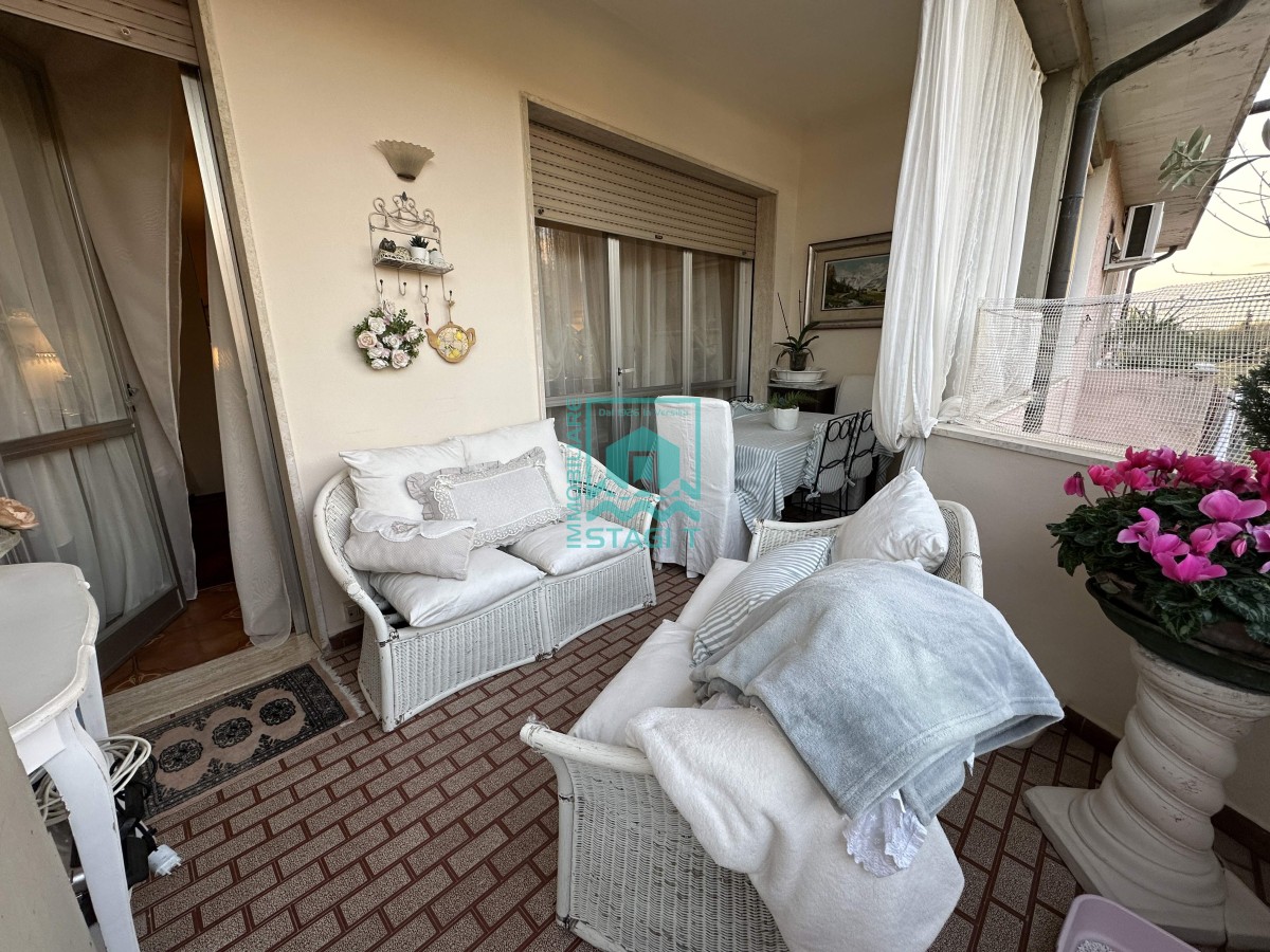 ingresso in disimpegno, cucina abitabile, grande e luminosa sala con accesso a terrazza vivibile, due camere matrimoniali, cameretta/stanza armadi e bagno con doccia.