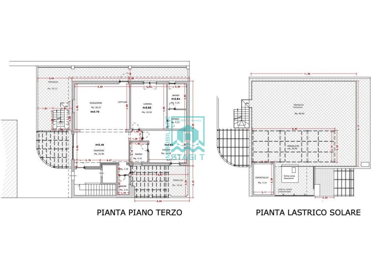 Viareggio-Centro: Attico e Superattico completamente ristrutturato con finiture di pregio, fine lavori 2025, terzo ed ultimo piano di palazzina servita da ascensore e così composto: